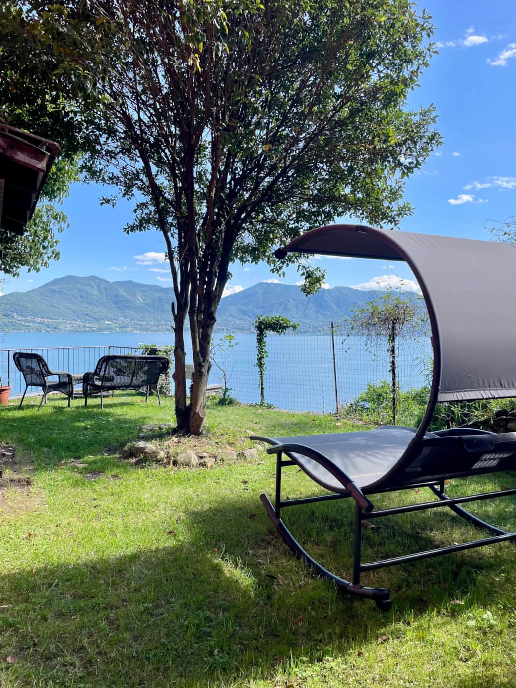 Esta habitación doble se abre a un jardín privado (aprox. 50 m²) de uso exclusivo. El espacio exterior, con vistas al Lago Maggiore, está totalmente vallado y equipado con tumbonas y un rincón de relax: una solución ideal para los huéspedes que viajan con su perro y valoran la privacidad y la comodidad.